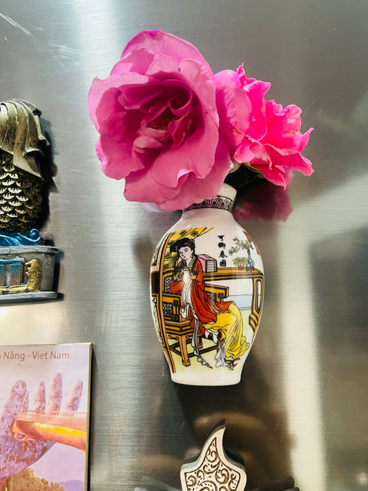 Cup Shaped Ceramic Flower Vase Fridge Magnet
