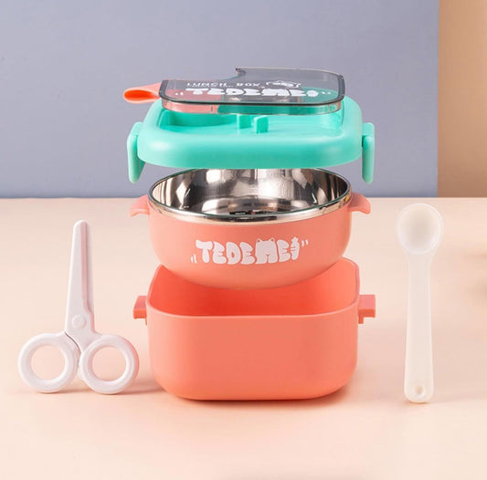 TEDDEMEI 3-Layer Insulated Lunch Box with Spoon & Food Scissors