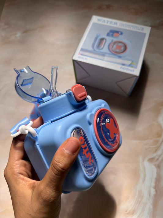 Camera Themed Sipper Bottle With Strap | Kids Cute Water Bottle | BPA Free Plastic Bottle | Silicone Cover