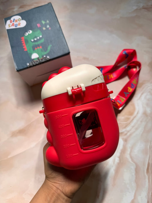 Dino Roar Sipper Bottle With Strap | Kids Cute Water Bottle | BPA Free Plastic Bottle | Silicone Cover
