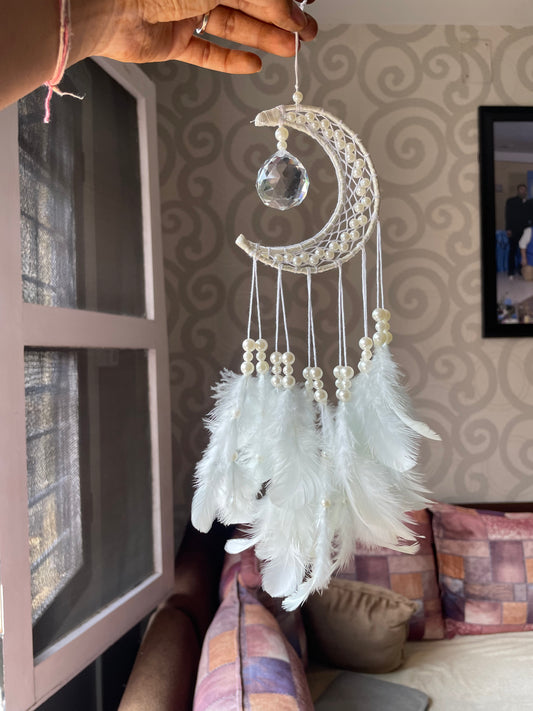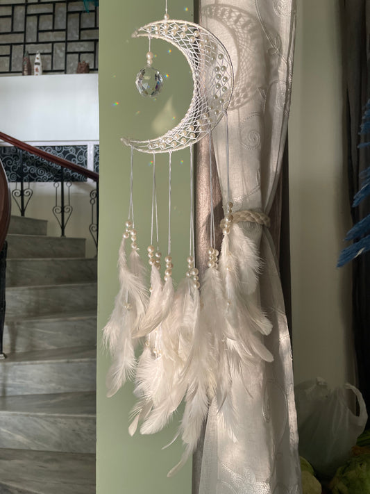 Car Hanging Mooncatcher with Crystal - White