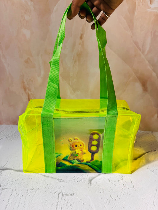 Transparent Neon Duffle Bag for Travel | Diaper and Essentials Bag for Kids | With additional Zipper Pouch