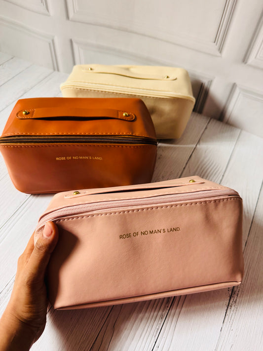 Premium PU Leather Waterproof Cosmetics Organizer Pouch | Travel Toiletries Bag