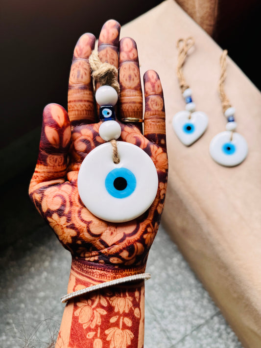 Turkish Evil Eye Amulet Car Hanging - White Round and Heart