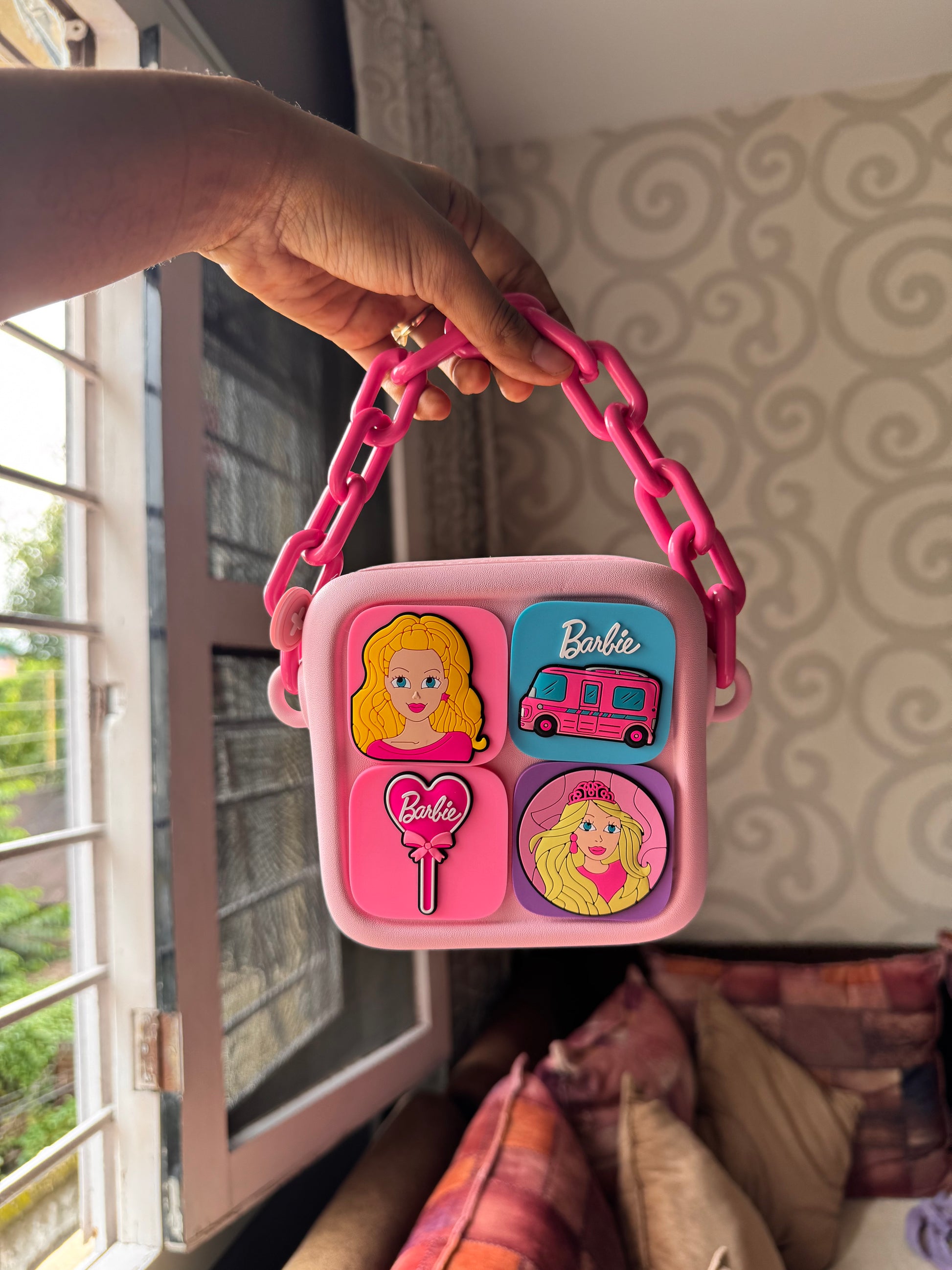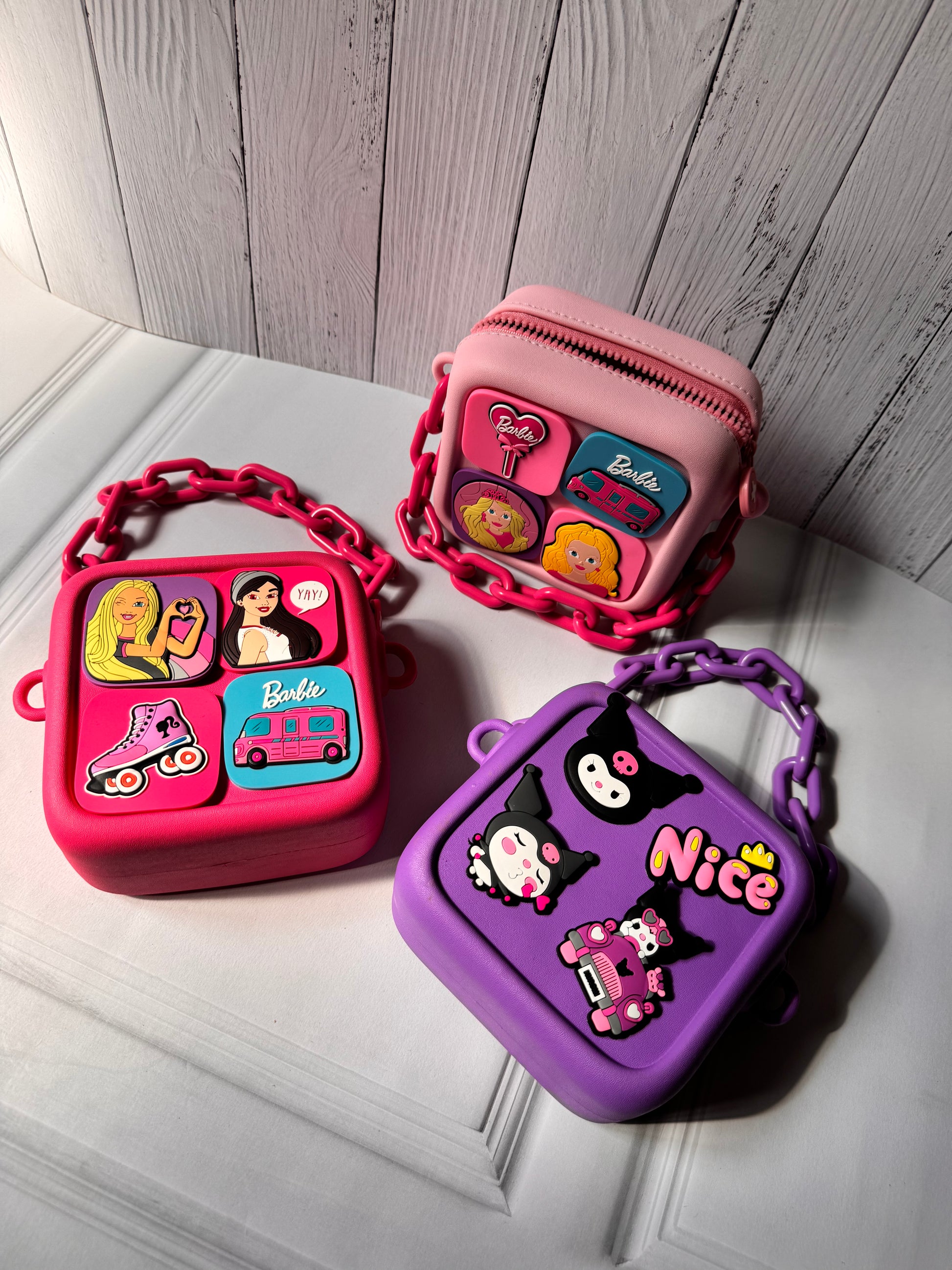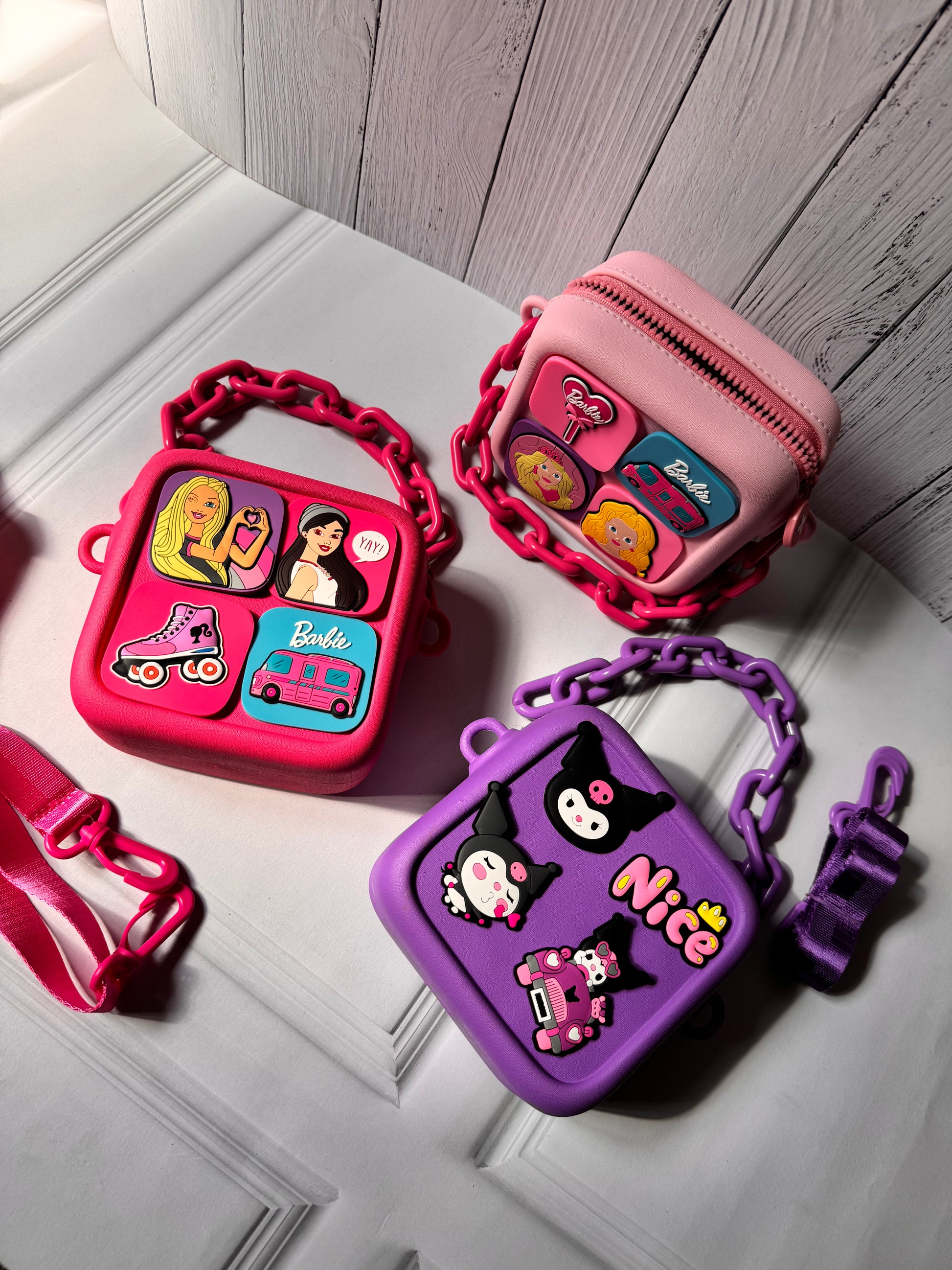 Barbie and Kuromi DIY Sling Bag | With Interchangeable Badges & Funky Chain Handle | Purse With Adjustable Belt