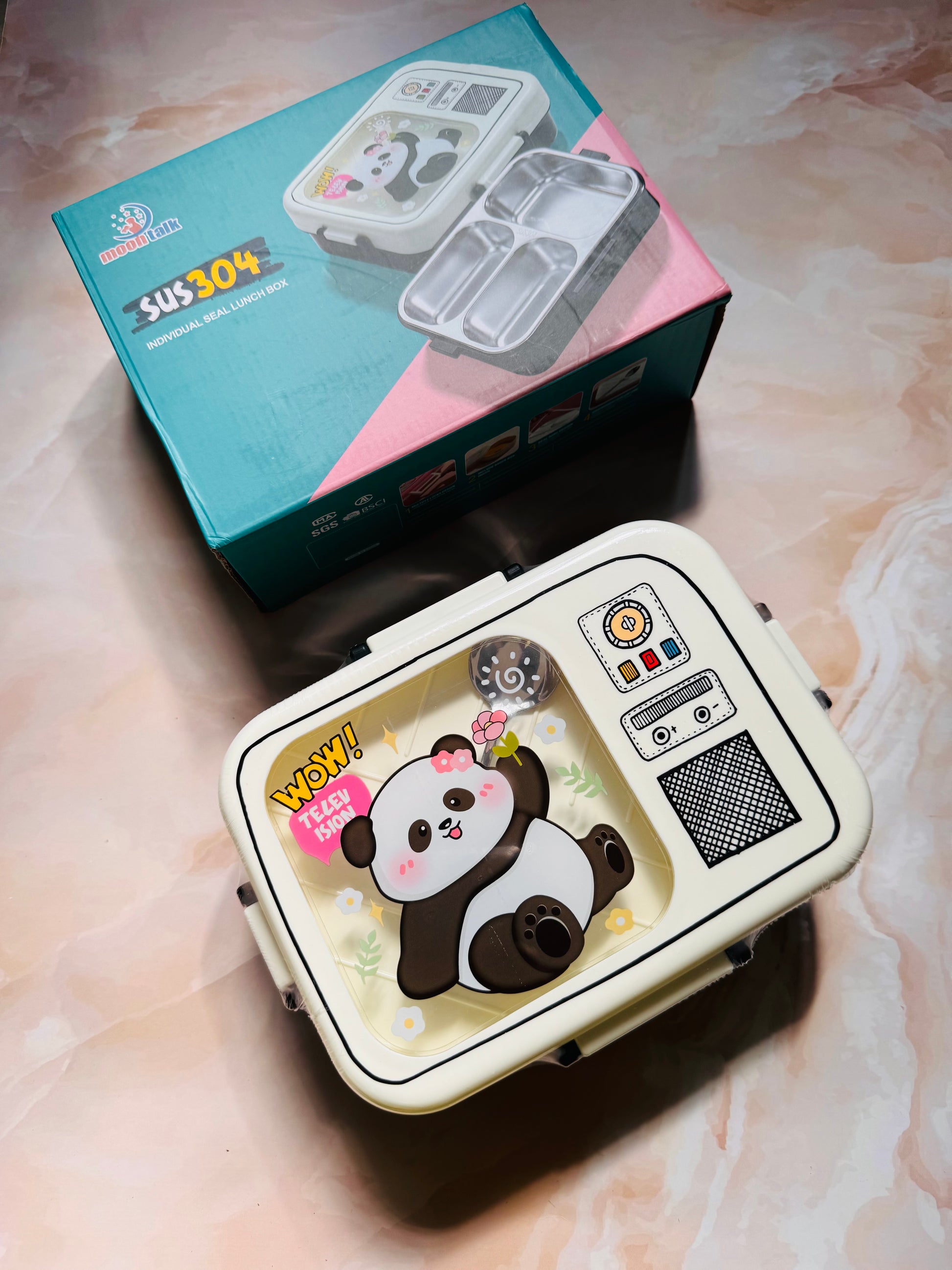 A must-have for every kid’s school bag! This 3-compartment panda lunch box is leakproof, durable, and easy to clean. Made from premium SUS 304 stainless steel with a cute panda, unicorn and space design on the lid.